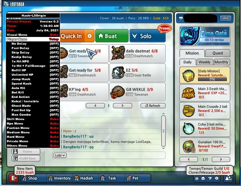 Cheat D3D Menu Lost Saga Origin 05,06 Juli 2021