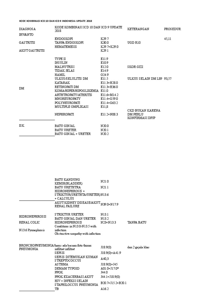 Sistitis kronis lainnya tanpa hematuria. 5 1 lambung 18 210 gastritis 6 2 18 210 dyspepsia 7 3 18 210 appendiksitis 8 4 18 210 hernia 9 5 19 210 cerhosis hepatis / penyakit 0 6 hati menahun 19 210 penyakit lain pada sistim 1 7 pencernaan penyakit pada sistim saluran kencing dan sistim genital 19 220 nephrotik syndrome 2 1 19 220 glomerulonephritis akut 3 2 19 220 nephritis akut 4 3 19 220 nephritis kronik 5 4 19. Sedangkan kode icd 10 hidronefrosis sendiri berbeda dengan kode icd 10 batu ginjal atau penyakit lainnya. Menurut kode icd 10 isk, infeksi saluran kencing ini biasanya dimulai di kandung kemih dan uretra. Penyebab hidronefrosis lalu apa penyebab hidronefrosis? Jika tidak diobati maka bisa menyebar ke bagian ureter dan ginjal.