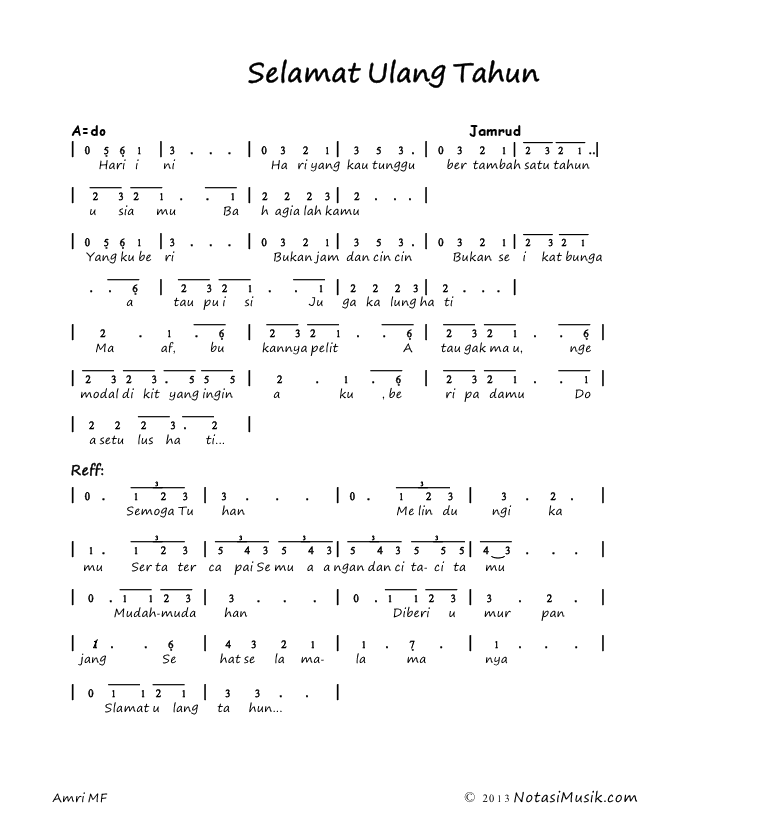 Not Angka Lagu Selamat Ulang Tahun